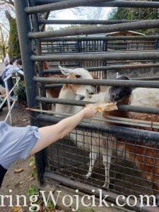 With a little amount of feed left, we decided to give it to some hungry llamas. We tried to divide it evenly between the animals, but one greedy llama kept trying to steal the others’ share when we gave it to them. We ended up making a makeshift plate with the feed bag in order to give the last bit of feed scraps to the other llama (and to avoid getting llama slobber on our hands).