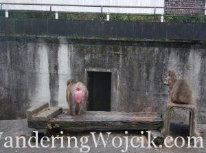 The next notable exhibit was the Japanese macaques. There was a fairly sized open enclosure featuring a group of them. At the top seemed to be the leader, siting proudly. A few feet away appeared to be a mother holding her child. It was neat to see their little society from up above.