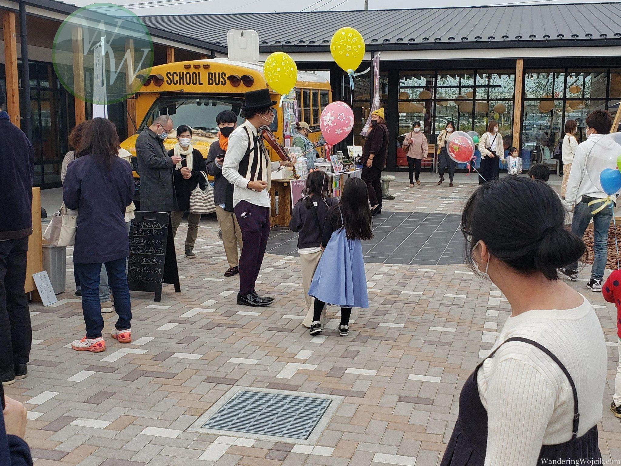 As we walked around the festival, a speaker in the distance was blasting Disney music in Japanese. It was interesting to hear familiar tunes being sung in Japanese. In addition, a violinist was walking around the venue performing for the guests. It was nice to see him delight those around him, and he appeared to enjoy his time as well.