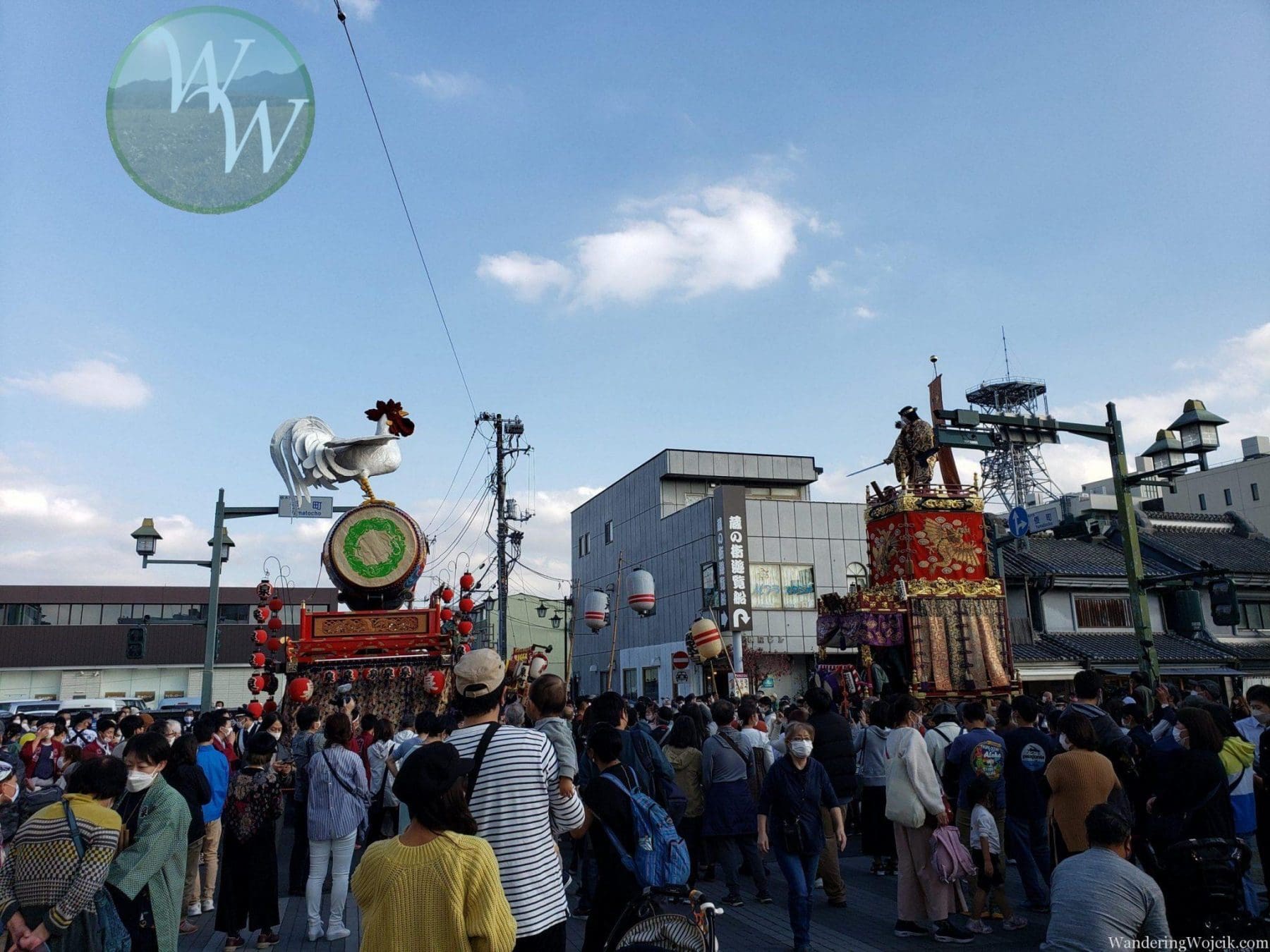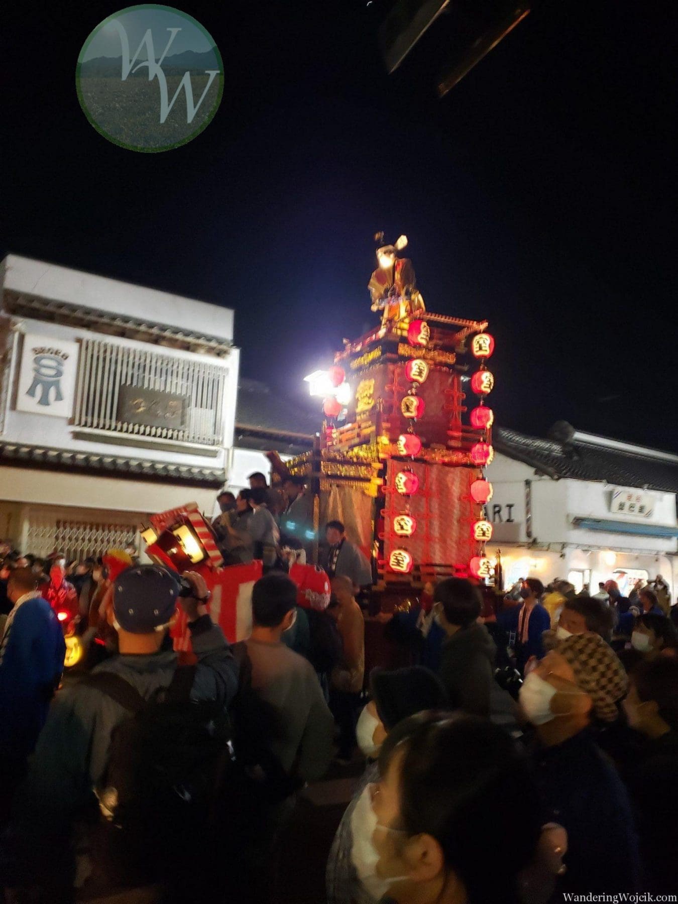 The Tochigi Autumn festival, also known as the ‘Float Festival’, is held every two years. During the festival, the road is blocked off to traffic, and a number of floats parade back and forth throughout the day. The dolls on the floats range from emperors, to warriors, princesses, and so on. There is even a float representing the famous Japanese fairytale protagonist ‘Momotato’ (Peach boy, the boy born from a peach). However, our float of choice had to be this lovely thing: