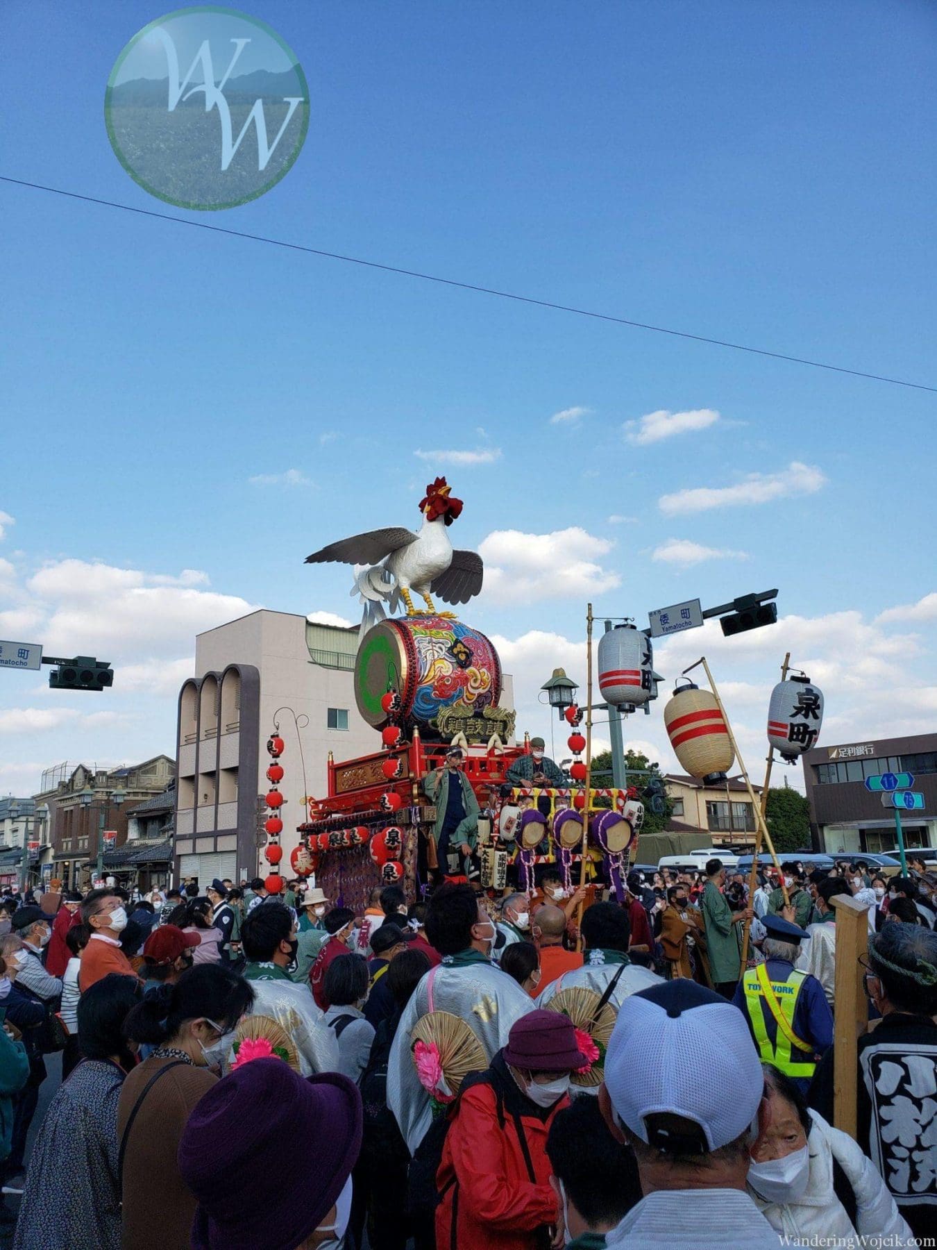 Each float has musicians inside that play drums, flutes, and occasionally sing and shout. Each float has a different set of music associated with it. When two floats encounter each other on the road, they have a sort of ‘battle’, playing their music loudly, before crossing past each other.
