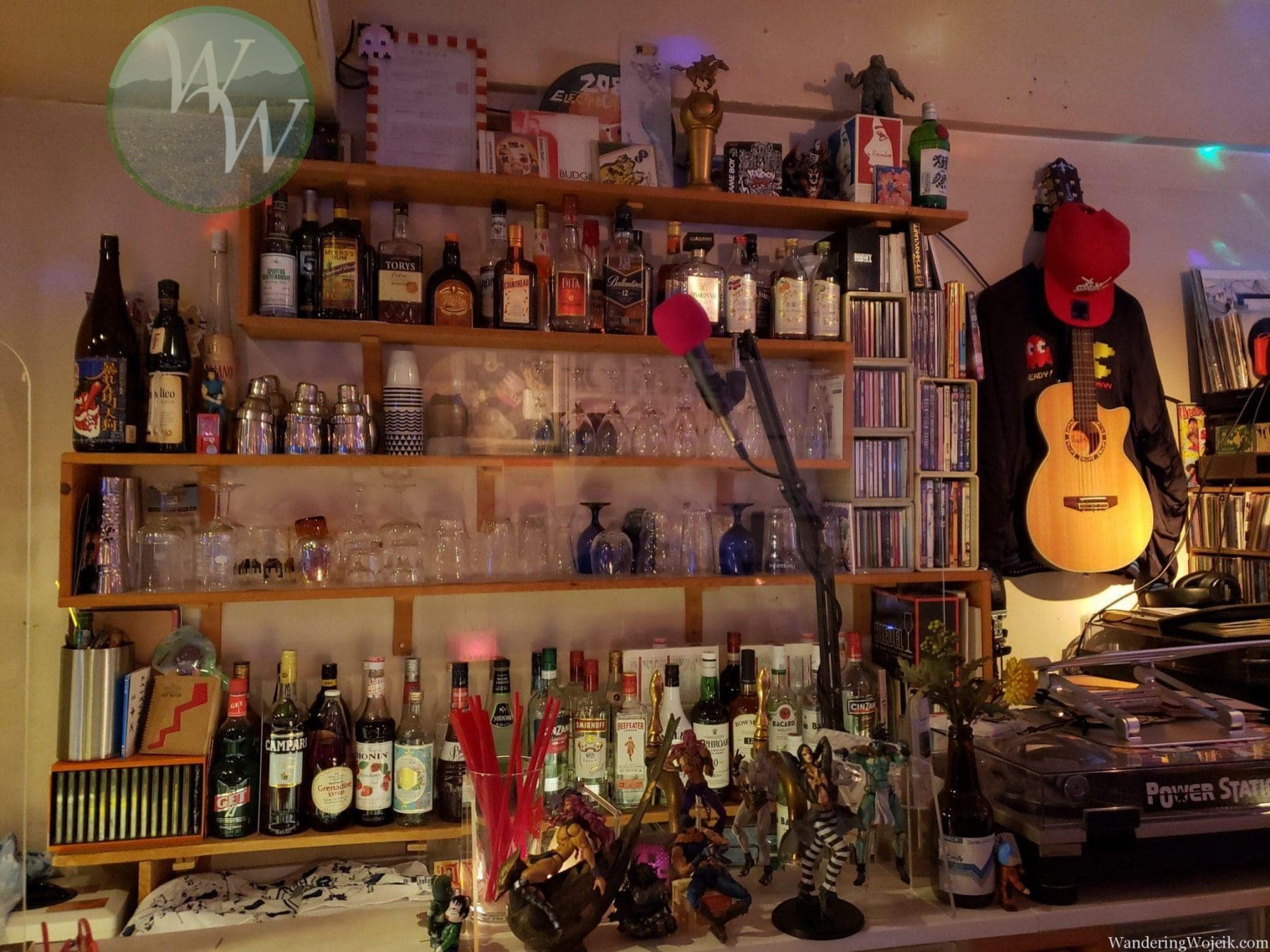 Packed with retro games, consoles, figures, and other memorabilia, this place hits the retro theme quite well. Some of the consoles are even set up so you can play them with a buddy! Game soundtracks and other retro style music can be heard all around, but it’s never too loud so people can converse easily.