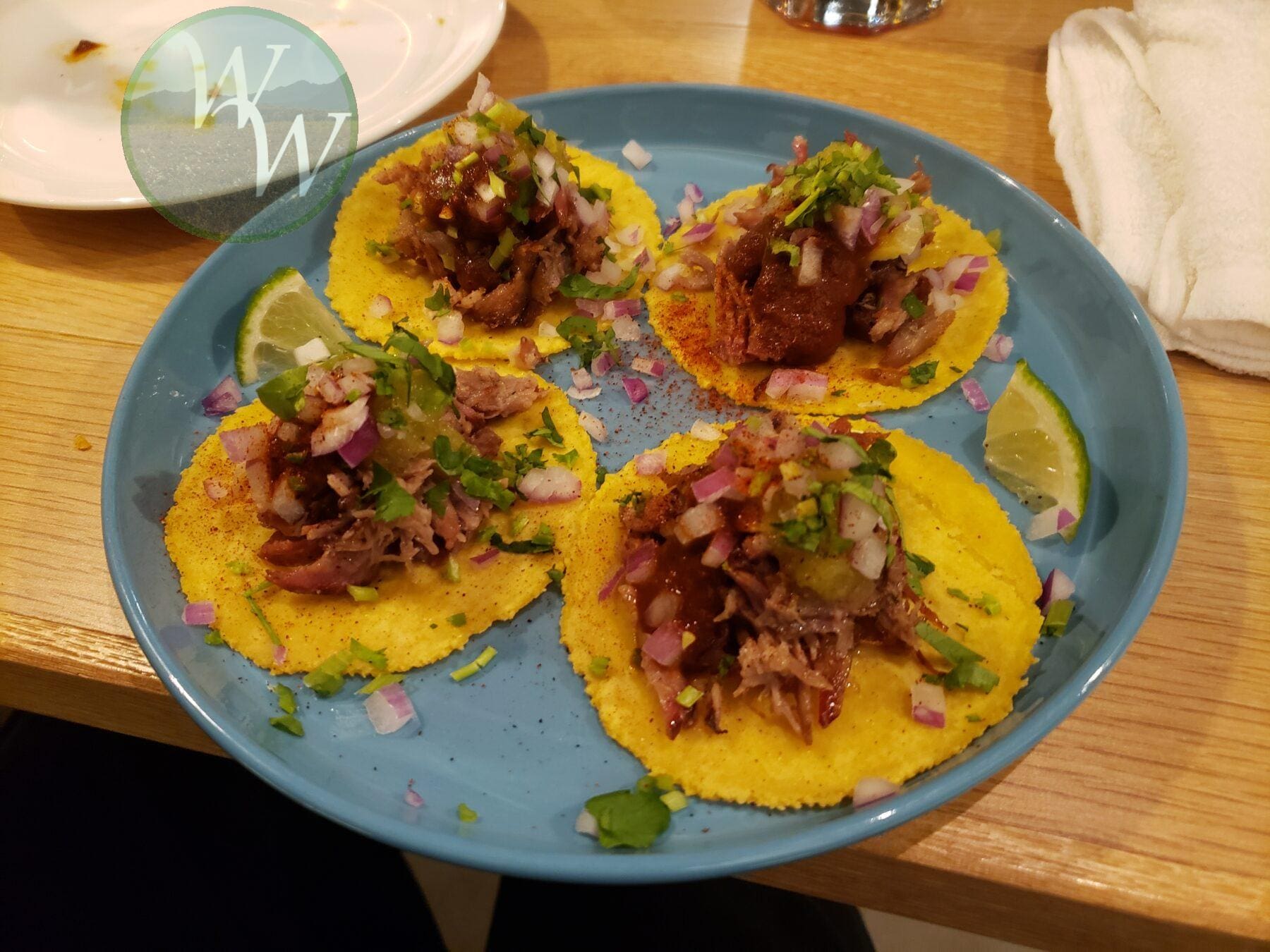 For the main course, I decided to go for some pork tacos. The taco plate includes 4 corn tortilla tacos for around 900 yen, and includes onions, avocados, and taco sauce. Even before taking the first bite I could tell the food would be good just by the smell. The aroma was in line with the Mexican food I’m used to back home, and biting into the first taco confirmed that while not 100% like the food in the west, it was flavorful, a little spicy, and delicious!