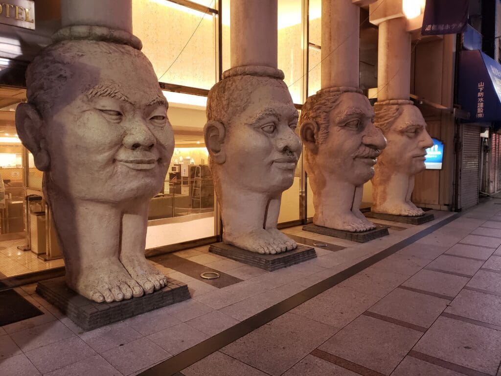 There’s actually an interesting story that goes with this river, known as the ‘Curse of the Colonel’ ( カーネルサンダースの呪い / Kaaneru no Noroi). In 1985, the Osaka baseball team “Hanshin Tigers” won the Japan League Championship, despite being the underdogs. To celebrate, several fans dressed up as players on the team jumped into the river. One of the star players on the team was an American named “Randy Bass”. Since there were no American fans present, they decided (likely in a drunken stupor) to go to the local KFC, uproot a statue of Colonel Sanders, and hurl it into the river.