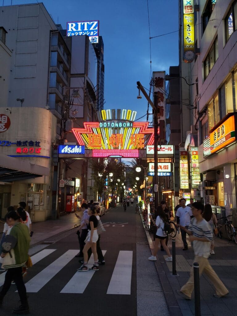 We got to Dotonbori after dusk, having arrived in Osaka earlier in the day and resting for a bit at the hotel. Exiting the train and walking to our destination, we could enjoy the sights of the city, and see upcoming events that we would unfortunately miss. The one that caught my eye was an upcoming performance of ‘Beetlejuice’ the musical.