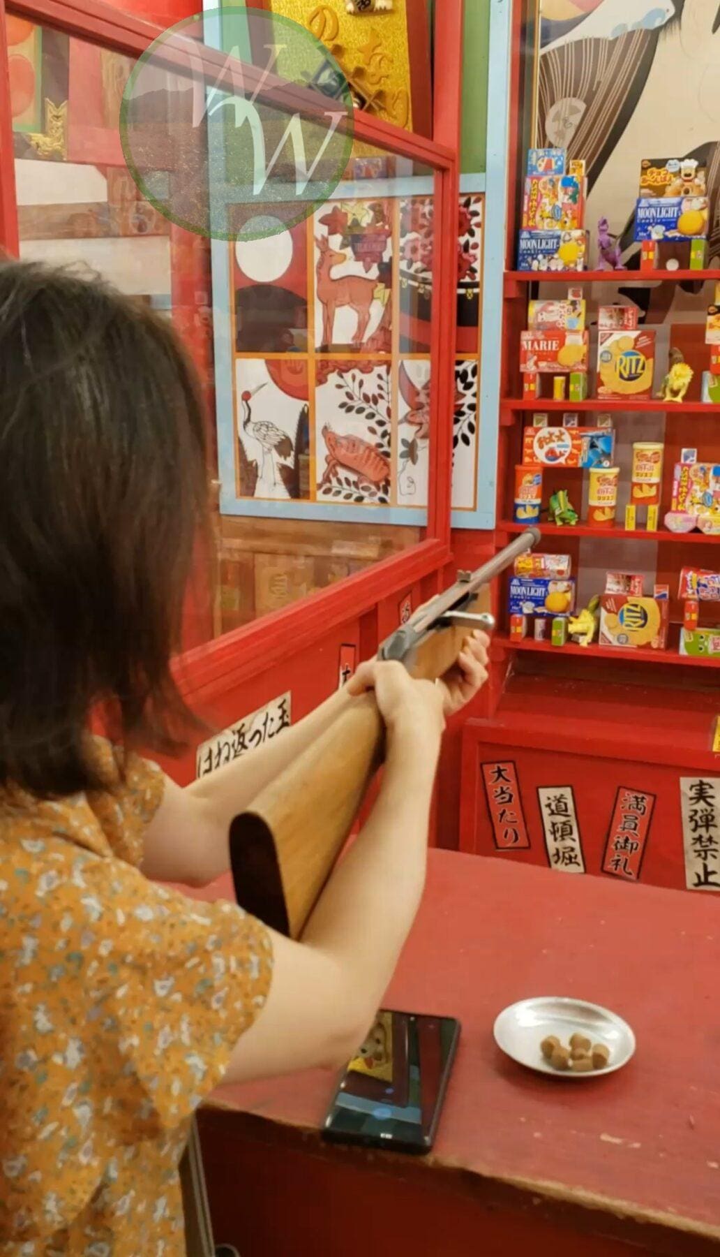 We concluded our tour of Dotonbori by going to a small shooting gallery. Here, we were given cork guns that we could use to shoot prizes off of the shelves in front of us. The prizes ranged from small candies and toys, and even some boxes of snacks. I remember it being quite noisy, since the workers would ring a bell every time someone shot something off the wall. Both of us were able to snag some of the smaller prizes, I’m almost certain the larger prizes are impossible to win. Still, it was great fun!